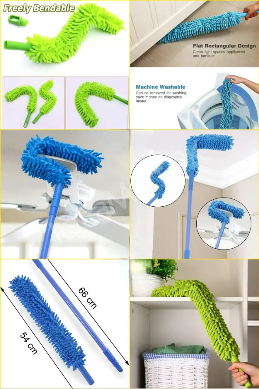 Its flexible and foldable design allows you to clean hard-to-reach areas, such as ceiling fans, light fixtures, corners, and high shelves, without using a ladder. The extendable handle and bendable head make it convenient to adjust according to your cleaning needs, ensuring a quick and easy cleaning experience. The microfiber head is washable and reusable, making it an eco-friendly and cost-effective cleaning tool for your home.
