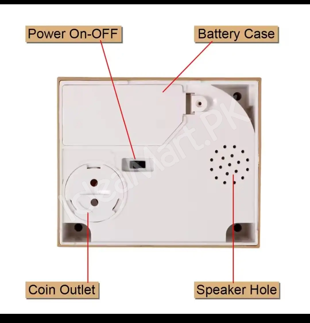 - Light & Sound Effects: Plays music and lights up when a coin is inserted, making every deposit exciting.