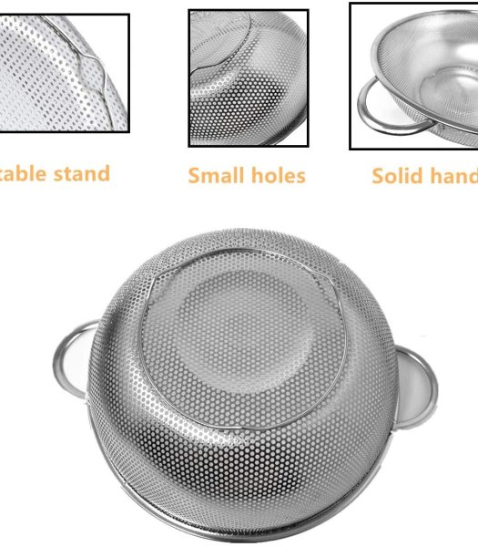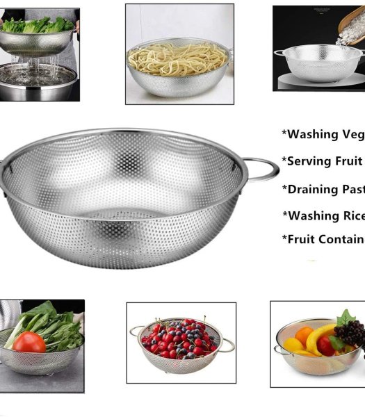 - It’s a must-have item in your kitchen as it plays a vital role in easing up the straining process. It’s a multi-purpose colander which is perfect for straining pasta, noodles, rice, orzo, vegetables, fruits and much more.